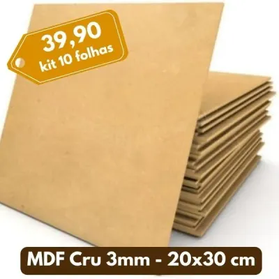 10 Chapas MDF Cru 3mm - 20x30 cm