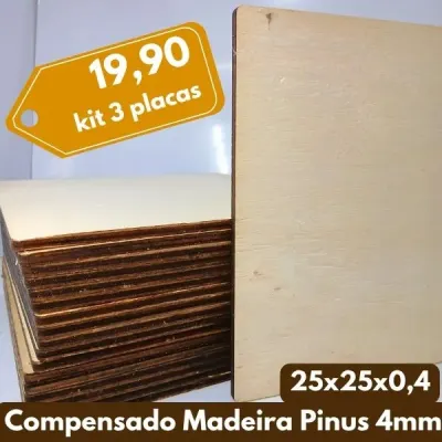 3 Placas Compensado Madeira Pinus 25x25x0,4cm