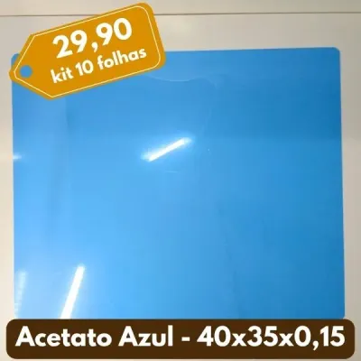 10 Folhas Acetato Azul - 40x35x0,15