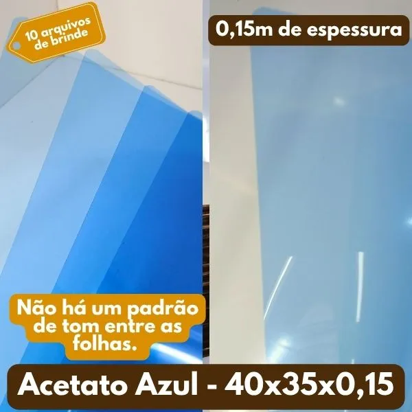 10 Folhas Acetato Azul - 40x35x0,15